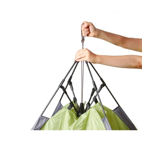Tenda automatica a cupola con doppio tetto e comoda abside. Grazie alla moderna struttura con tecnologia di trazione a fune integrata, può essere montana e pronta all’uso in pochi secondi.Â